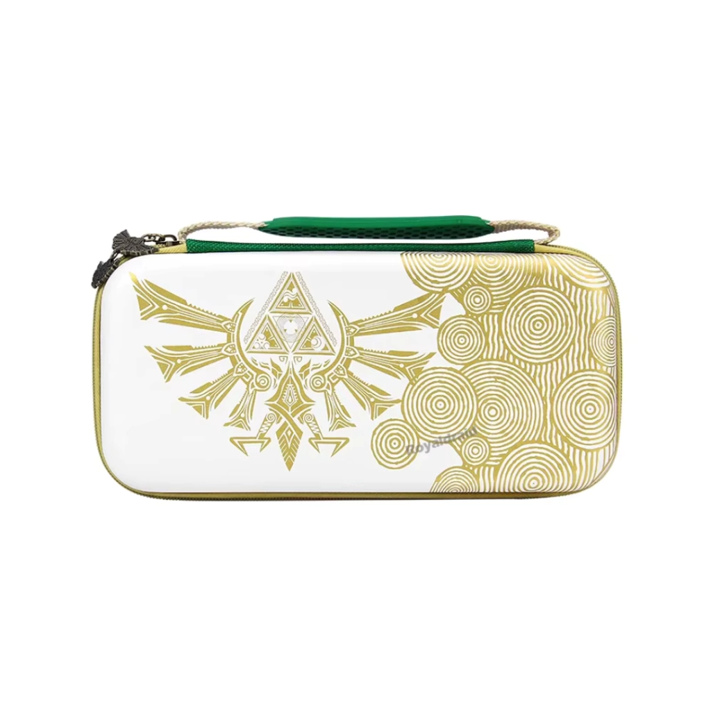 A parte superior do case possui um bolso interno separado que pode acomodar grips de joycon, straps, cabos, e outros acessórios, e mais um compartimentos interno e seguro próprio para guardar as mídias físicas de seus jogos cabendo até 10 cartuchos!